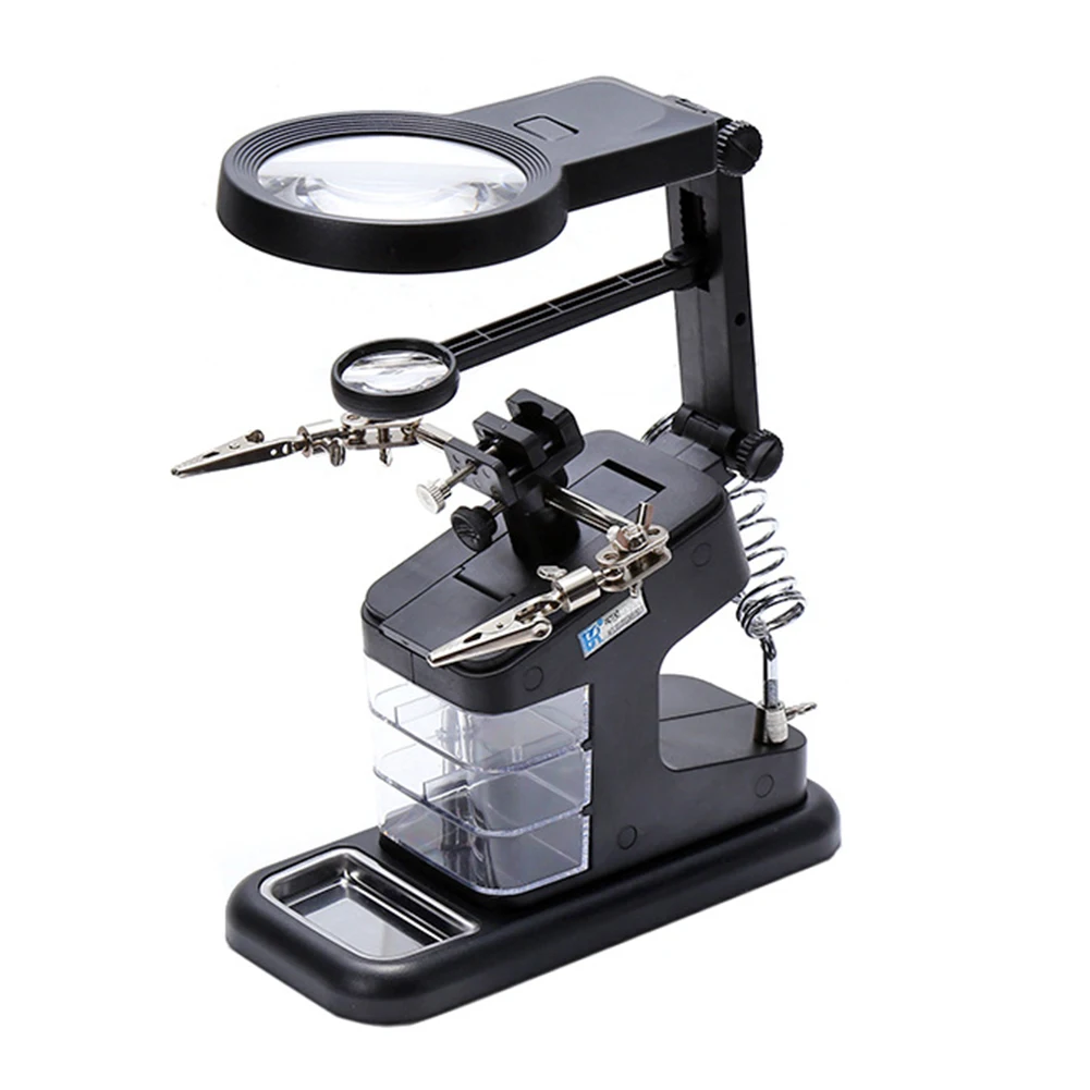 The integrated alligator clip acts as a third hand, securely holding your workpieces in place while you solder or repair, enhancing accuracy and stability. The sturdy design and articulated arm make it easy to position the magnifier at the perfect angle for your tasks. Whether you're working on electronics, jewelry, or crafts, this magnifying tool is an invaluable addition to your toolkit, making soldering and repairs easier and more efficient.